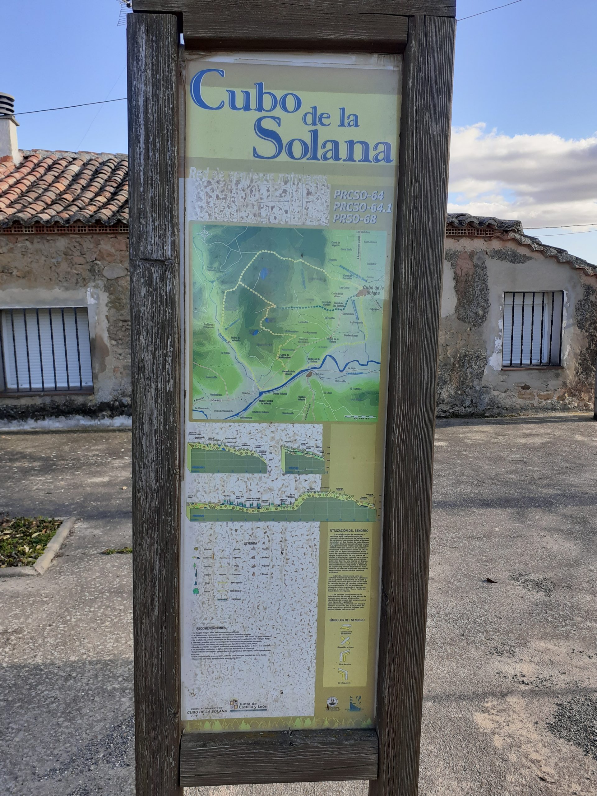 Recorrido: Salida de Cubo de La Solana-Carretera de Almazán-Ermita de la Virgen de La Solana-Bajada al Molino de La Solana-Subida al castro celtibérico “Los Castillejos”, frente al Molino-Orilla del Duero hasta Velacha (ermita y torreón medievales). De regreso, desde el Molino, opción de pasar a Valdespina por la presa- Al inicio de la subida a la Ermita, tomar el Camino de La Solana a dcha.- Se pasa por la necrópolis “Los Cantos”, no apreciable a simple vista, a dcha. (Ver “Un poco de historia”)-Cubo de La Solana.
